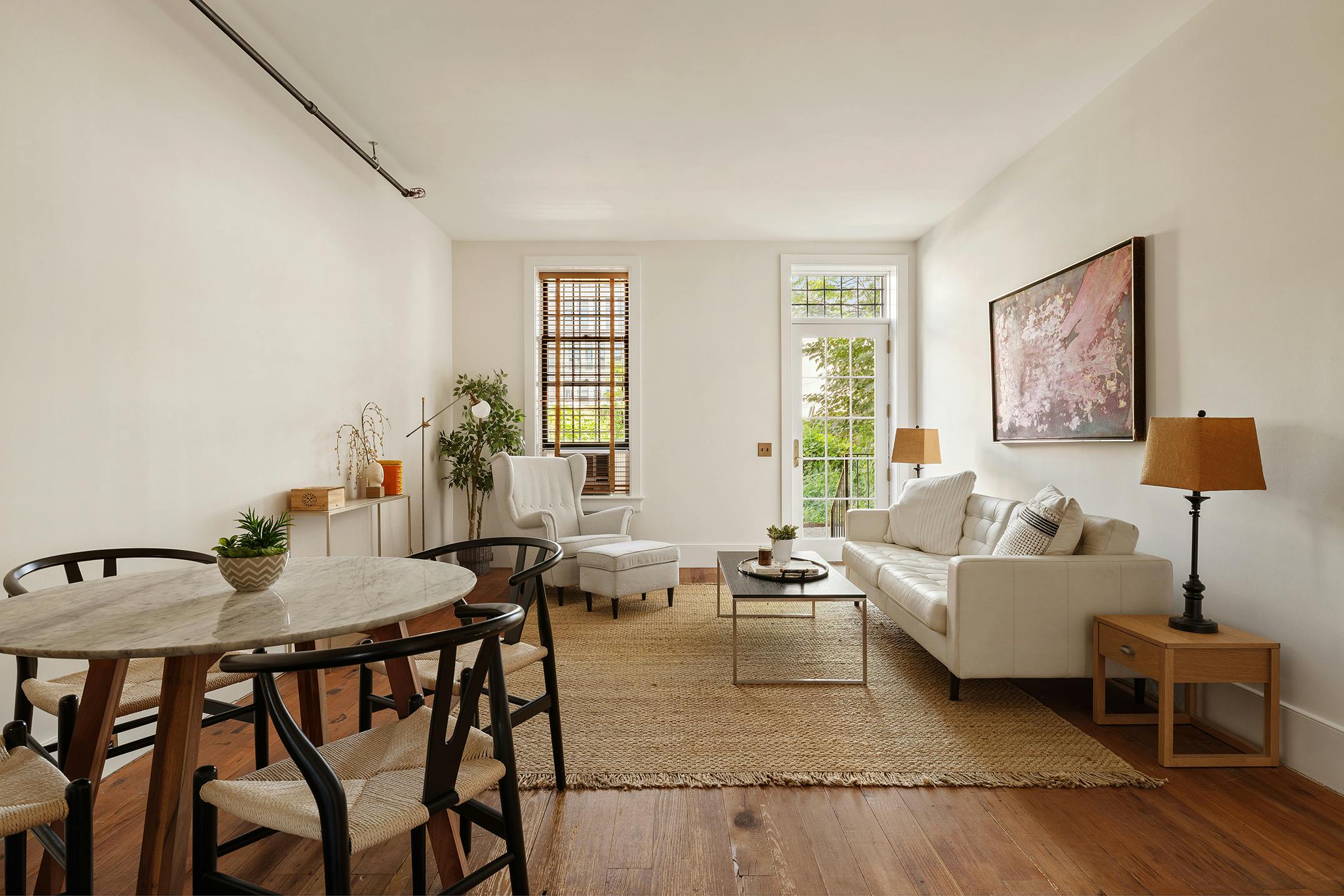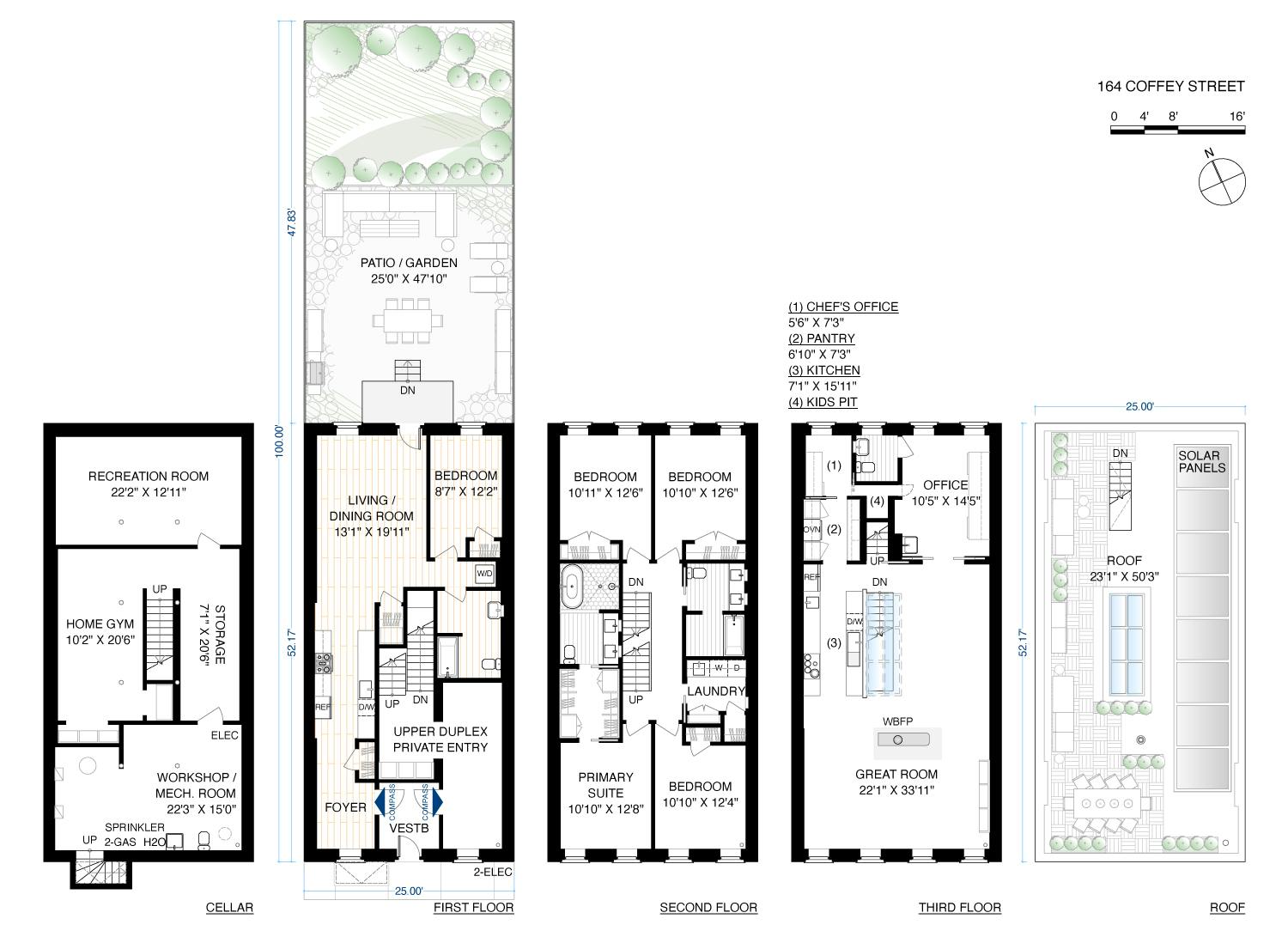 Unassuming yet impressively grand, number 164 has been lovingly transformed into an unexpected and charming home by the skilled design team at Hendricks Churchill. Its unique aesthetic could easily be found nestled among the rolling hills of Litchfield County or tucked away on a narrow street in Nantucket. Expertly designed with an ‘upside down’ layout commonly seen in these parts, you'll enter through the owner's foyer and ascend to the top floor great room. This space makes full use of the house's 25-foot width, boasting a cozy wood burning fireplace, bookshelves for miles, luxurious natural light throughout the day, and breathtaking views of New York's Upper Bay to the south. But the true standout feature is the carefully crafted kitchen - perfect for the chef in your house. With nearly 16 feet of counter space on two sides, a fully stocked pantry, and a chef's office looking out to the north where hints of lower Manhattan can be seen, this is truly a dream kitchen. Across from the kitchen is the dining area, comfortably seating 12 but able to accommodate up to 20 for a sit-down dinner. Tucked away in its own secluded corner is a spacious and bright creative space, perfect for a home office or den. Upstairs, the rooftop offers stunning views in all four directions with a full solar array and endless potential for creating your own personal oasis. Imagine watching summer sunsets behind the Statue of Liberty, sipping cocktails with the iconic Manhattan skyline as your backdrop, or spending sun-soaked afternoons making memories with loved ones on your private rooftop hideaway.