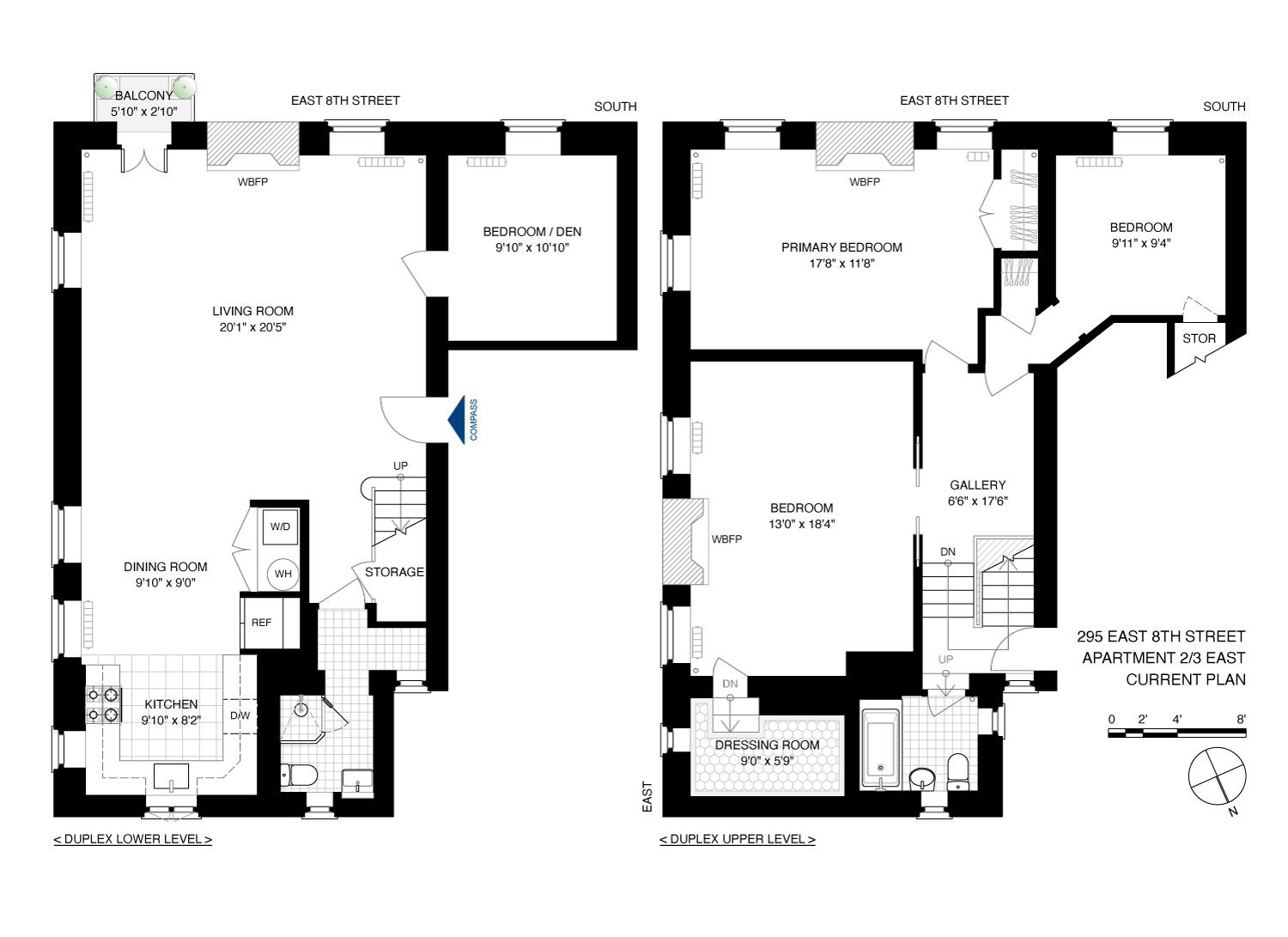 Located within the grand building at 295 East 8th Street, Apartment 2-3E covers the back south, east, and north sides of the second and third floors, guaranteeing abundant natural light all day long. The original charm of the building can be uncovered by delicately removing the existing sheetrock to reveal stunning Monk bond brickwork. And, just imagine the thrill of discovering century-old wooden ceiling joists and beams running 10 feet above across the ceilings.