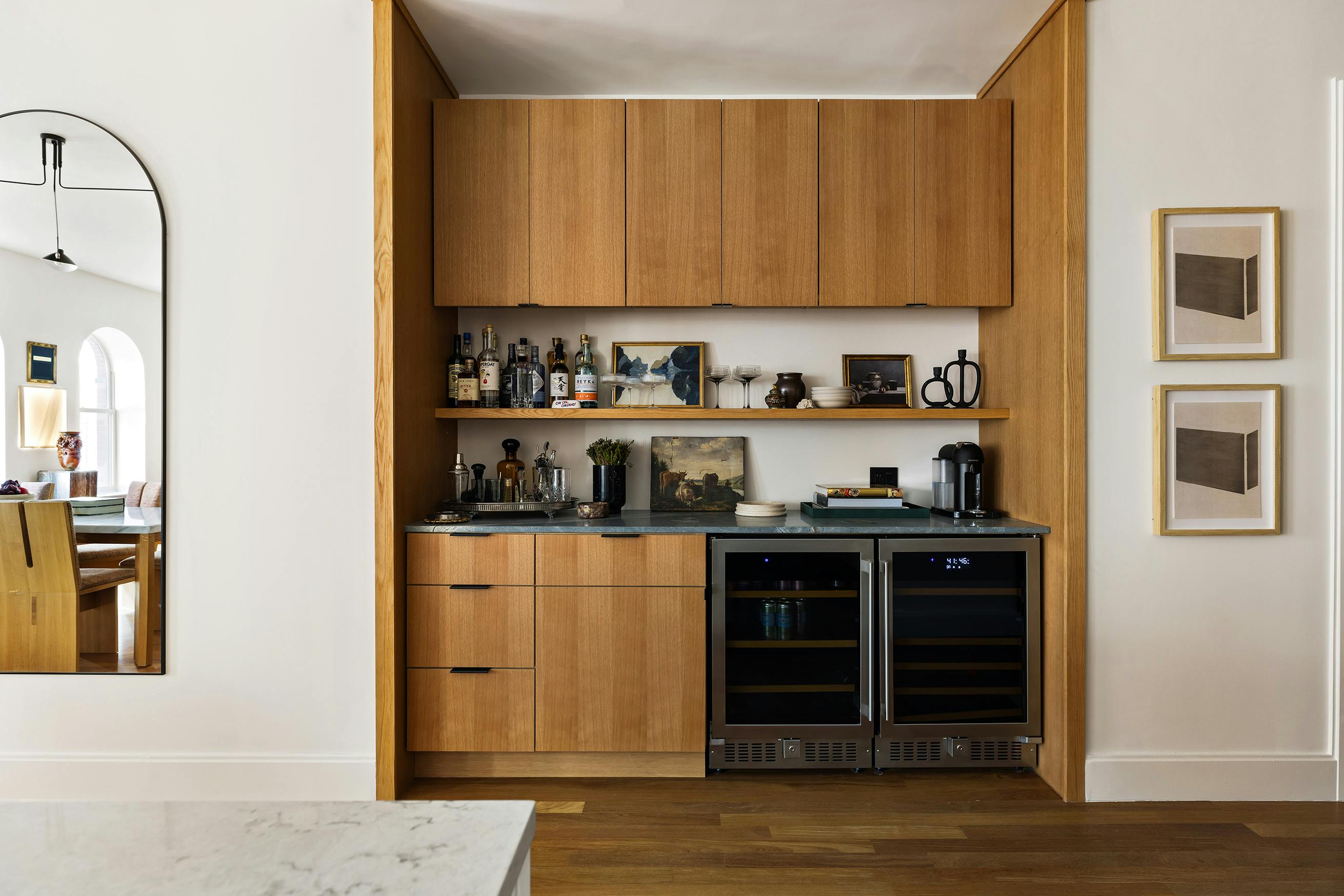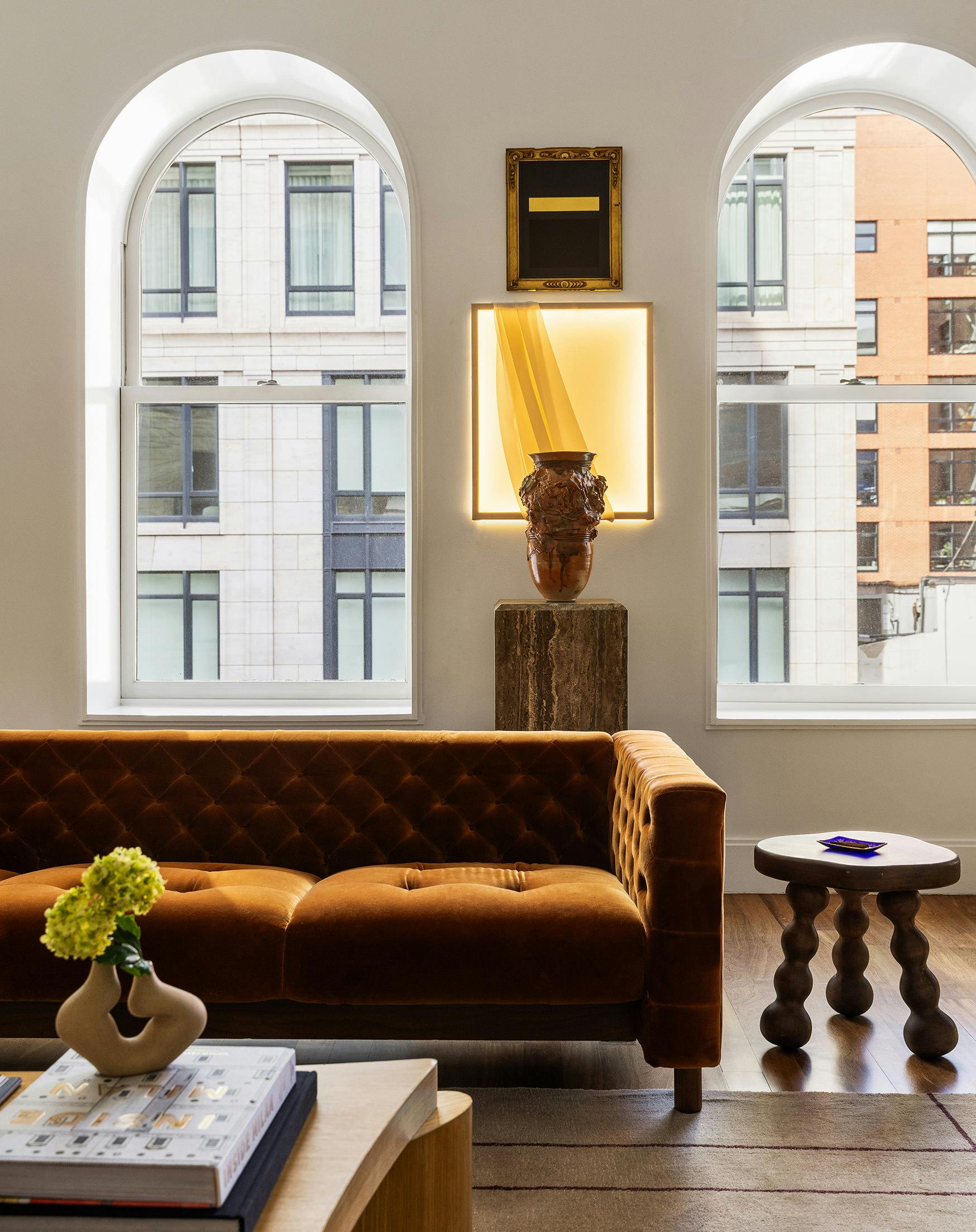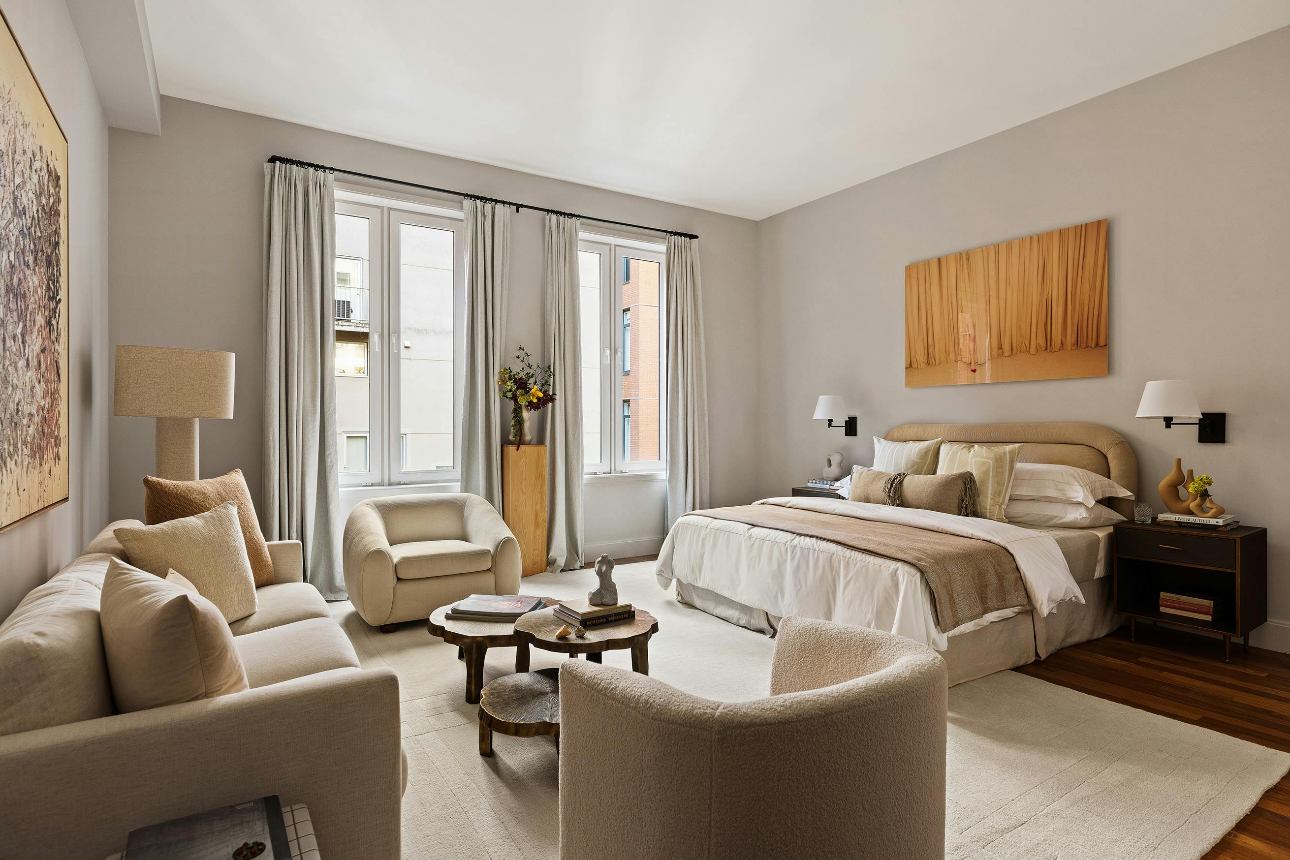 Apartment 5E offers an intelligently layed out two full bedroom, three bathroom with a well-placed and high-ceilinged escape area perfect for a den, home office or guest refuge. You’ll enter into a grand foyer which leads to a wide gallery space and the beautifully proportioned living area of the loft. Boasting four arched windows across the northern side of this room, you’ll look out from the kitchen over your loved ones and guests gearing up for the day with their morning coffee or trading light-hearted barbs over evening libations prepped from the custom wine and coffee bar with dual wine and beverage fridges. And from the kitchen, your guests' senses will be immediately greeted with the warm and comforting aroma of delicious meals being prepared with the help of a five-burner Bosch cooktop and range, Meile vented hood and dishwasher, enormous Sub-Zero fridge and ample upper and lower cabinet space. Preparing meals will not only be a task but a joyous experience filled with creativity and flavor.