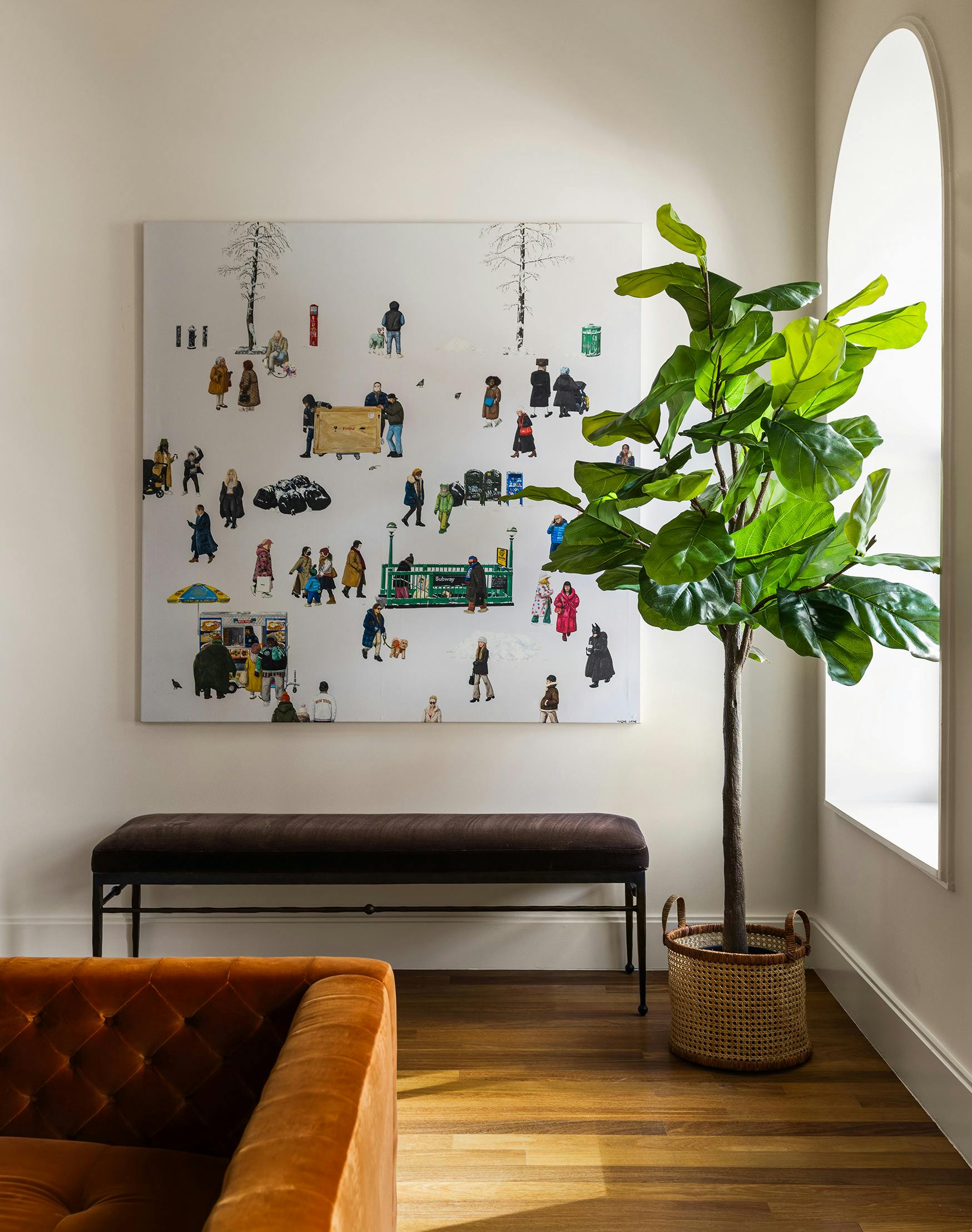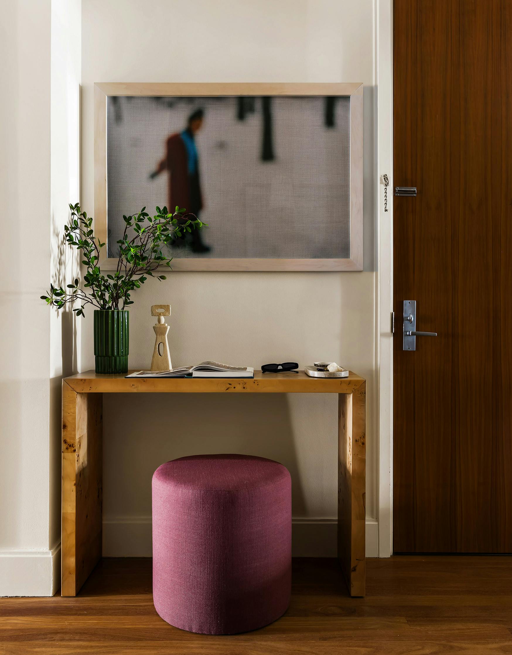 In a whimsical twist, the apartment features a full height loft space that hovers between leisure and function. Currently serving as a cozy media room, it can just as easily transform into a chic home office, temporary guest quarters, or even a lively playroom. With its own bathroom and cleverly placed proximity to the main living area, this sanctuary offers a peaceful retreat from the bustling energy of the rest of the apartment.